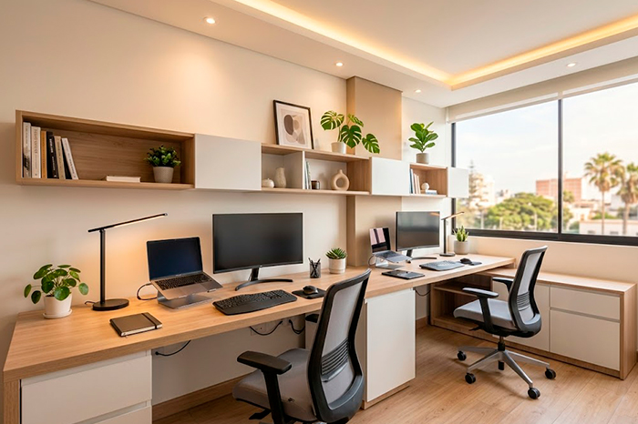 Las nuevas oficinas priorizan espacios abiertos, divisiones en drywall, iluminación estratégica y mobiliario ergonómico que optimiza productividad y estética.